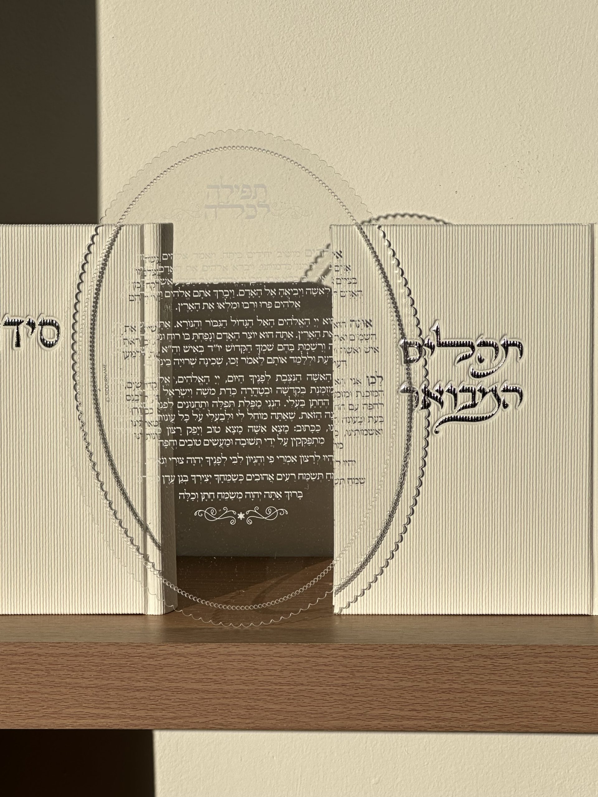מארז סידורים מהודר לכלה , גוון לבן, גובה 17.5 ס”מ , רוחב 12.5 ס”מ .