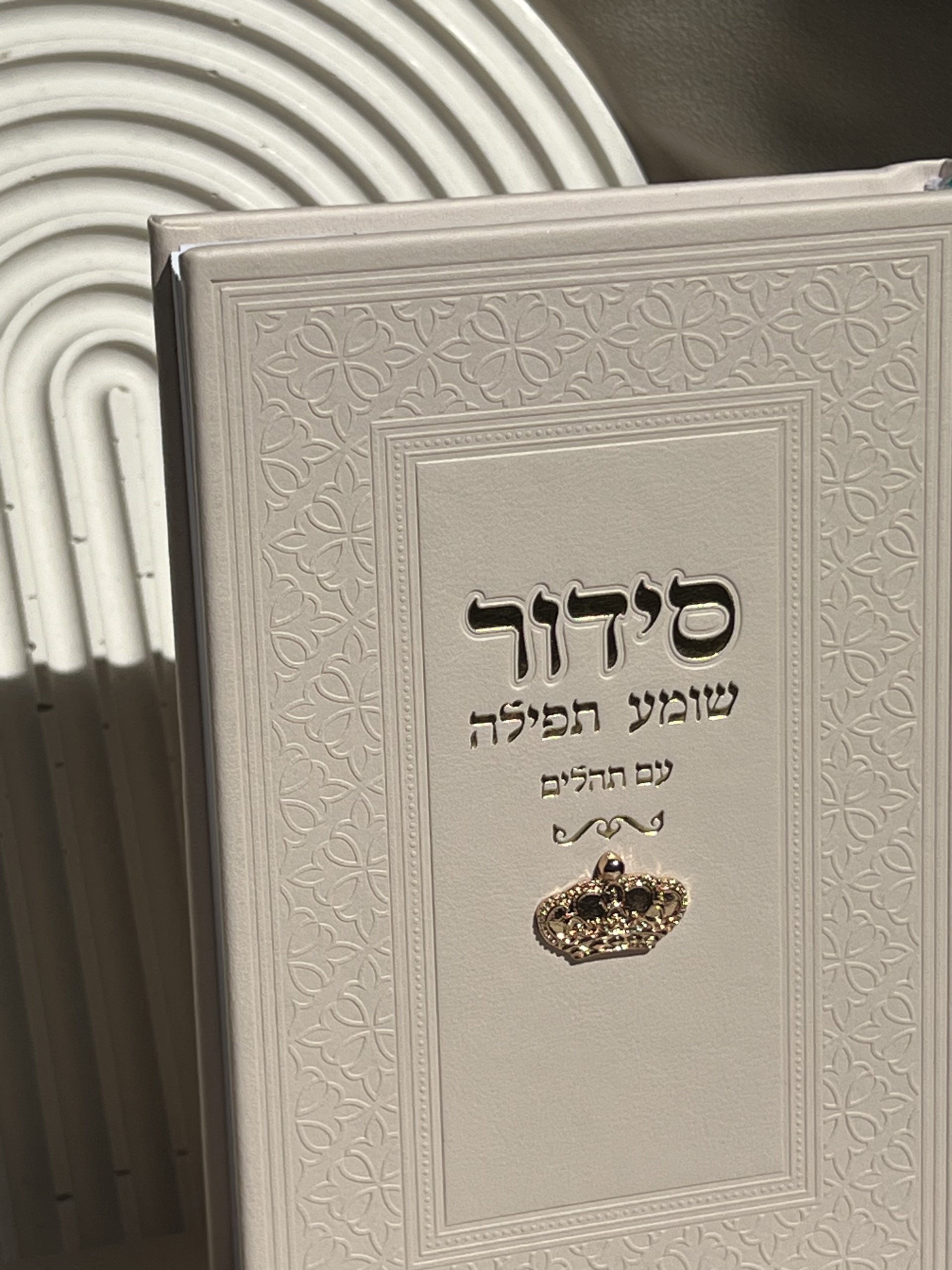 סידור ” שומע תפילה ” צ’ארמס כתר, גוון שמנת עם זהב , גובה 17.5 ס”מ , רוחב 12.5 ס”מ .